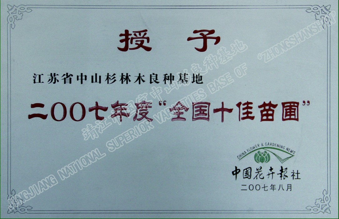 靖江市中山杉林木良種有限公司單位現(xiàn)有職工120人,其中中高級(jí)技術(shù)人員26人,初級(jí)技術(shù)人員45人,高級(jí)技工45多人,備有多功能灑水車、高空作業(yè)車、挖掘機(jī)、草坪噴播機(jī)等齊全的園林施工機(jī)械,年承接綠化工程100萬平方米以上。公司自成立以來,參與了眾多省內(nèi)外綠化重點(diǎn)工程的建設(shè),先后完成江陰長(zhǎng)江公路大橋、潤揚(yáng)大橋、南京三橋、蘇州吳中大道、揚(yáng)州西北線繞城、無錫沿江高速、無錫342省道、滬寧高速、泰高路、寧通高......